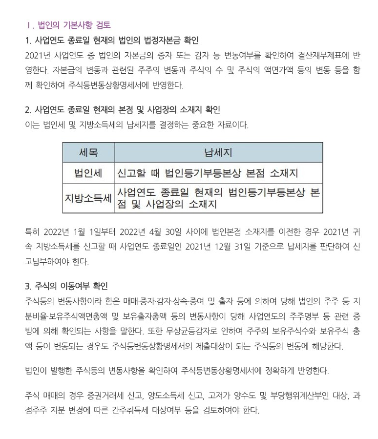 * 2022년에 업로드한 글입니다. 하지만 2023년 법인세 신고시에도 동일하게 도움이 될 것으로 판단됩니다.