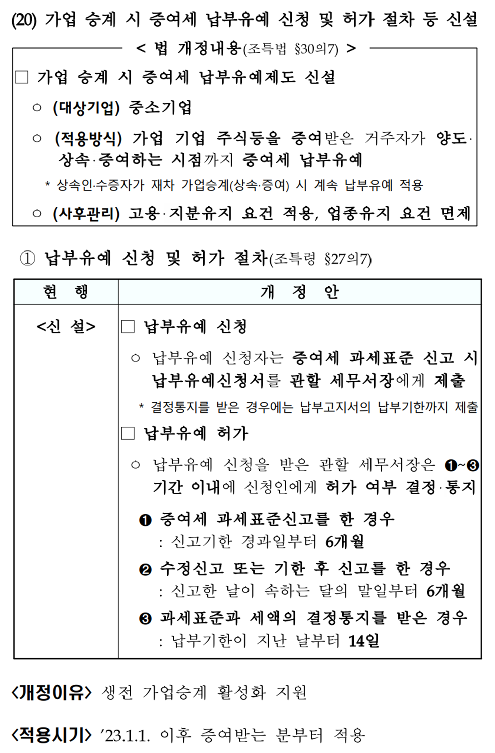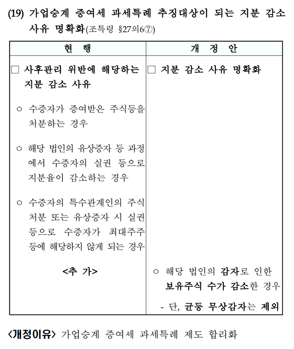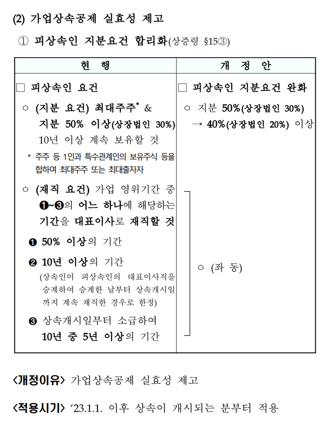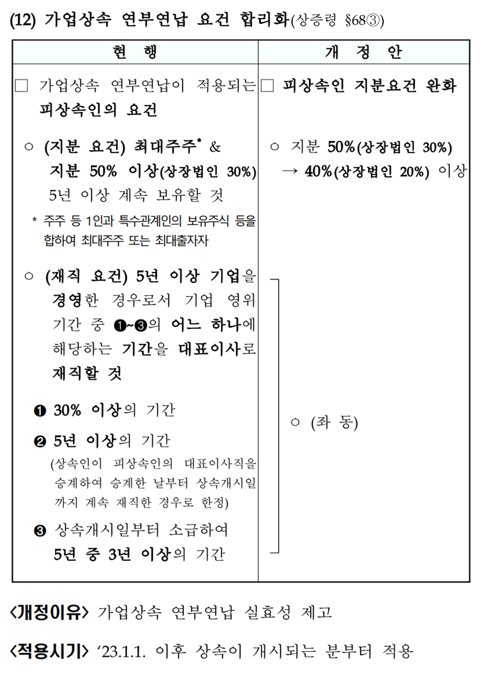 2023년 세제개편 후속시행령 - 가업승계