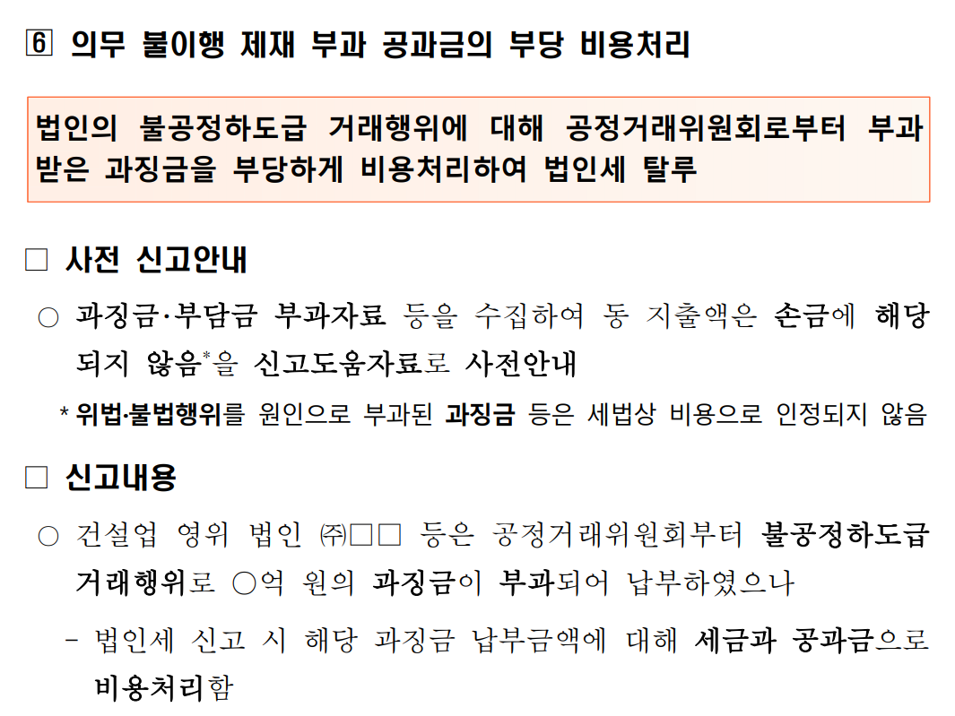 주요 신고내용확인 추징 사례