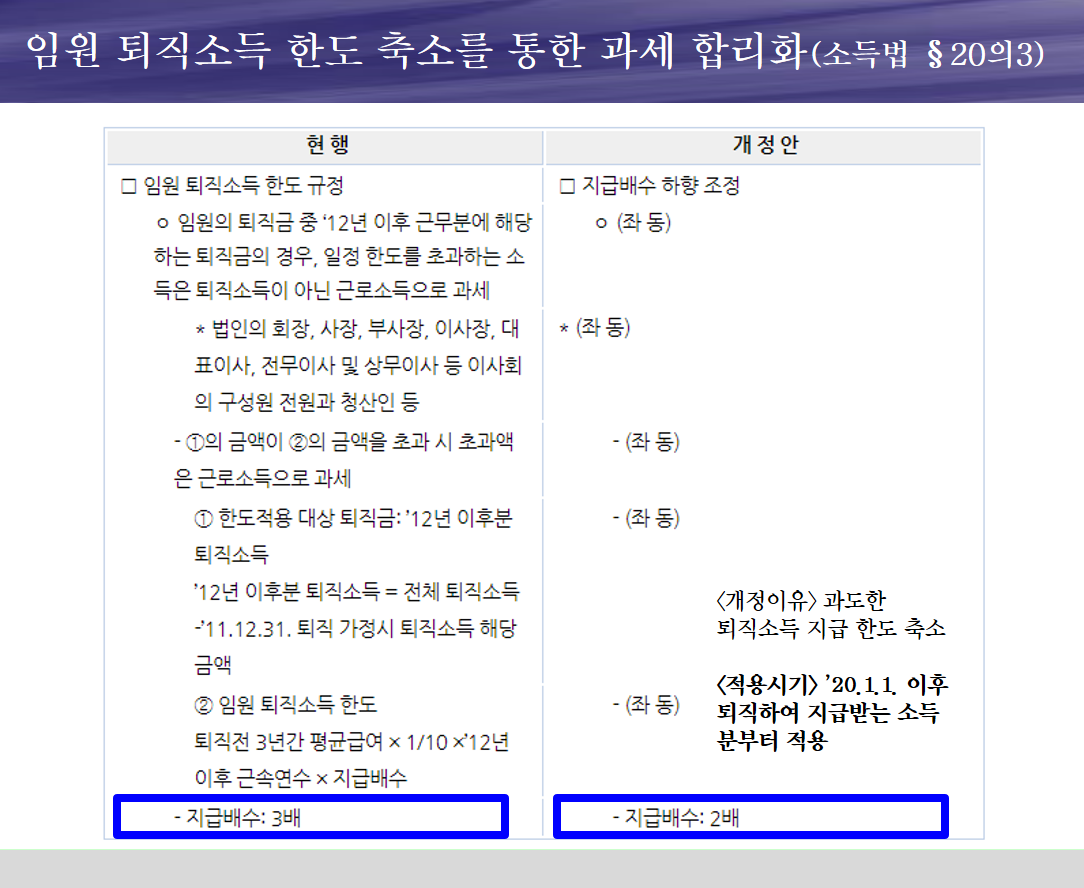 ※ 임원퇴직소득 한도 변경