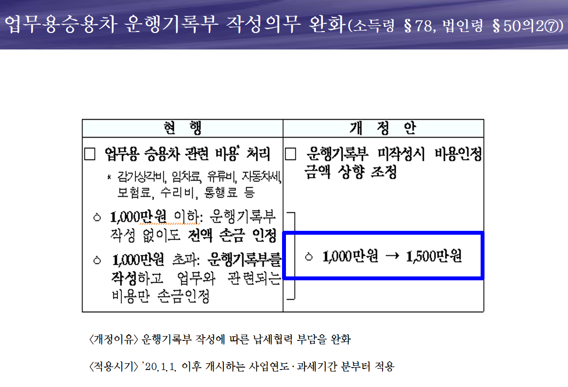 ※ 업무용 승용차에 대한 비용처리 한도가 높아졌습니다.