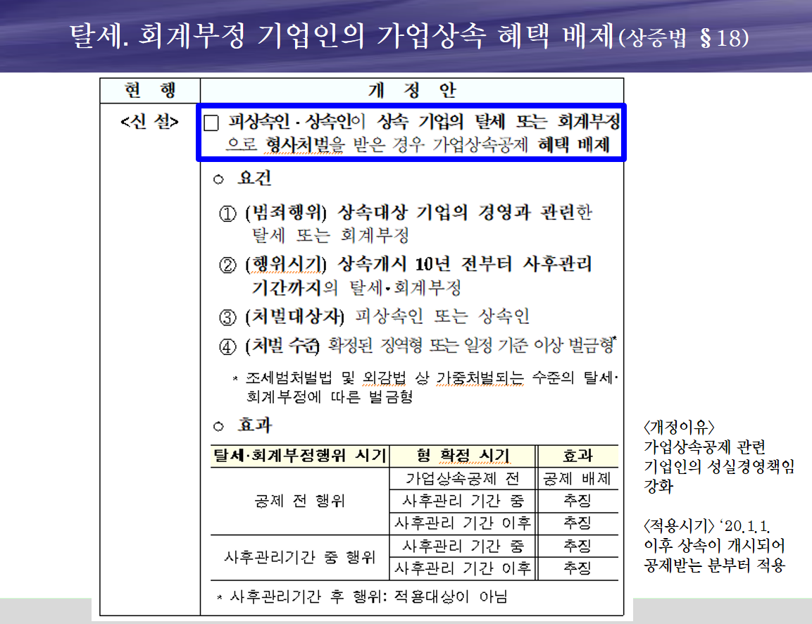 ※ 탈세 및 회계부정 기업은 '가업승계' 시 공제혜택이 없습니다.