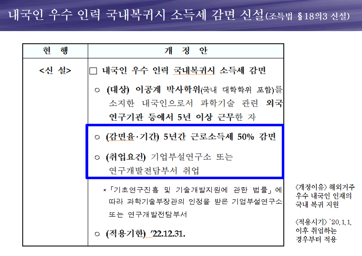 ※ 외국 기술인력을 고용하는 경우에 대한 혜택입니다. 조건은 기업부설연구소와 연구개발부서입니다.