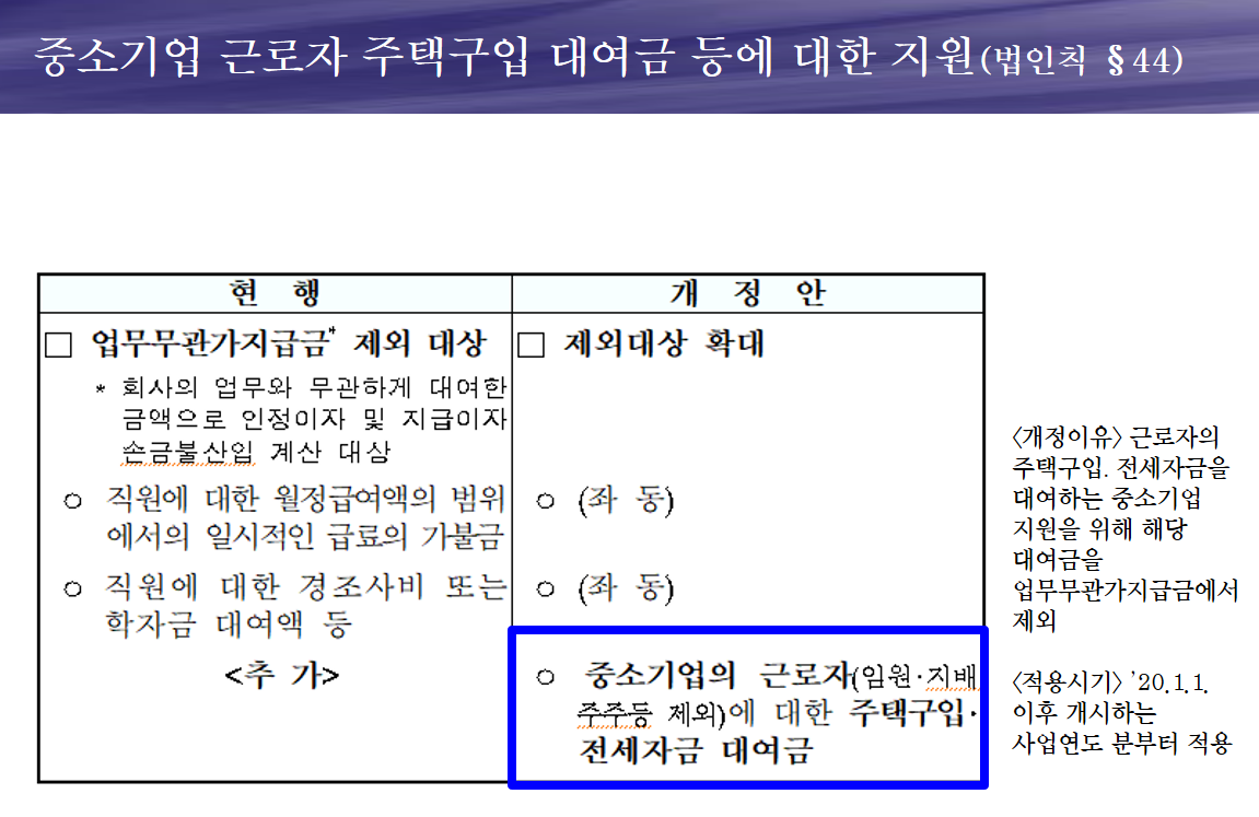 ※ 2019년에 적용되는 법인 관련 세법은 [중소기업 지원제도] 메뉴에서 <경영안정지원세제>, <고용관련지원세제> 등을 참고하시면 좋습니다. 2020년 세무조정하실 때, 실질적인 도움이 되는 내용입니다.